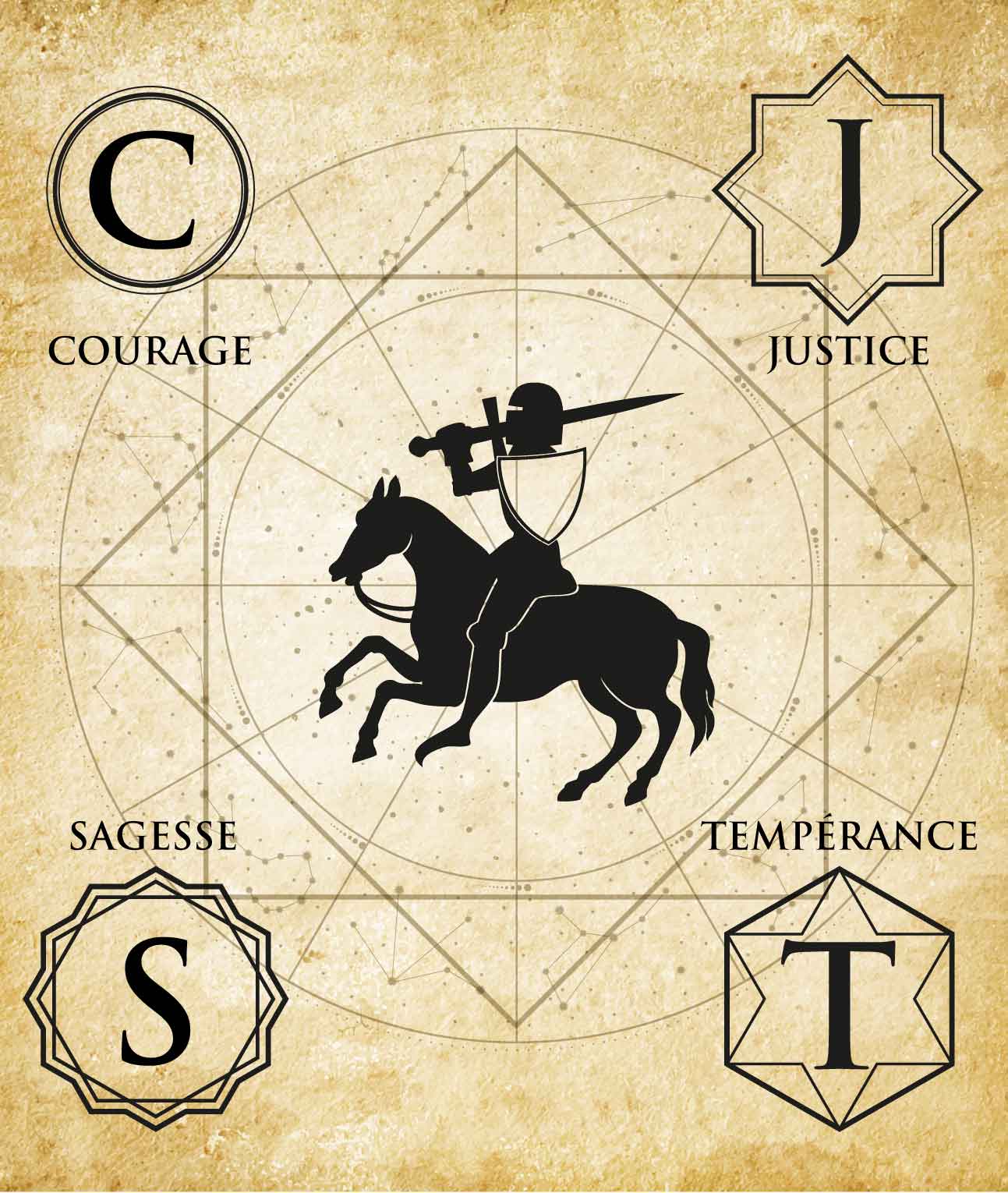 uel est le secret derrière le blason du Seigneur Hugues 1er de Commier ? Le cavalier doit percer le mystère des quintefeuilles gueules pour placer la vertu cardinale.